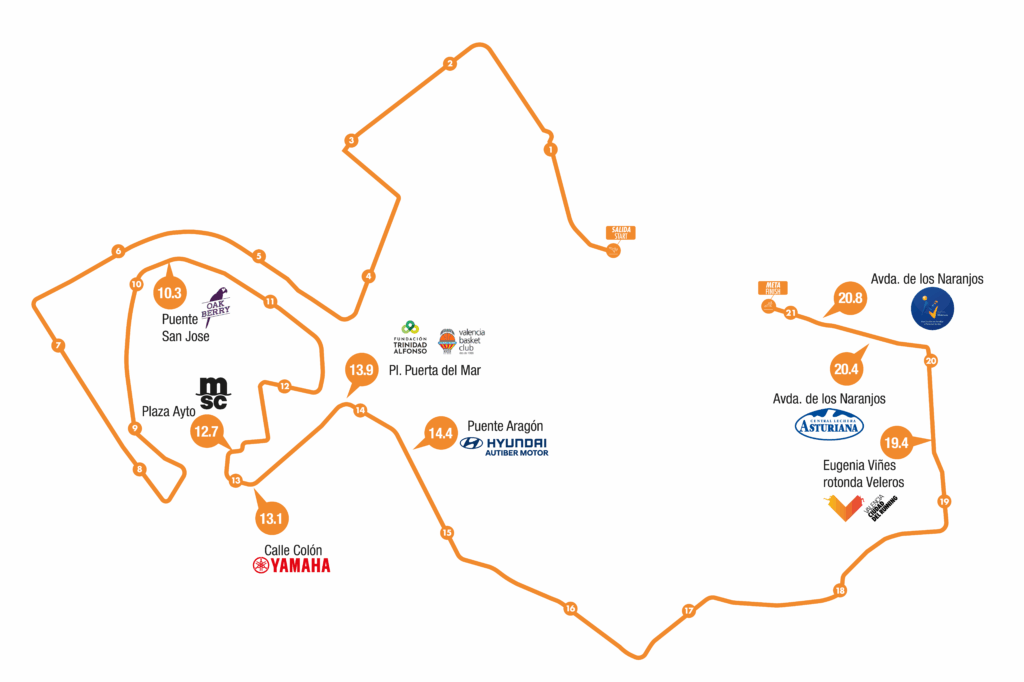 19,4 | Eugenia Viñes rotonda Veleros | Valencia Ciudad del Running (Discobus) |